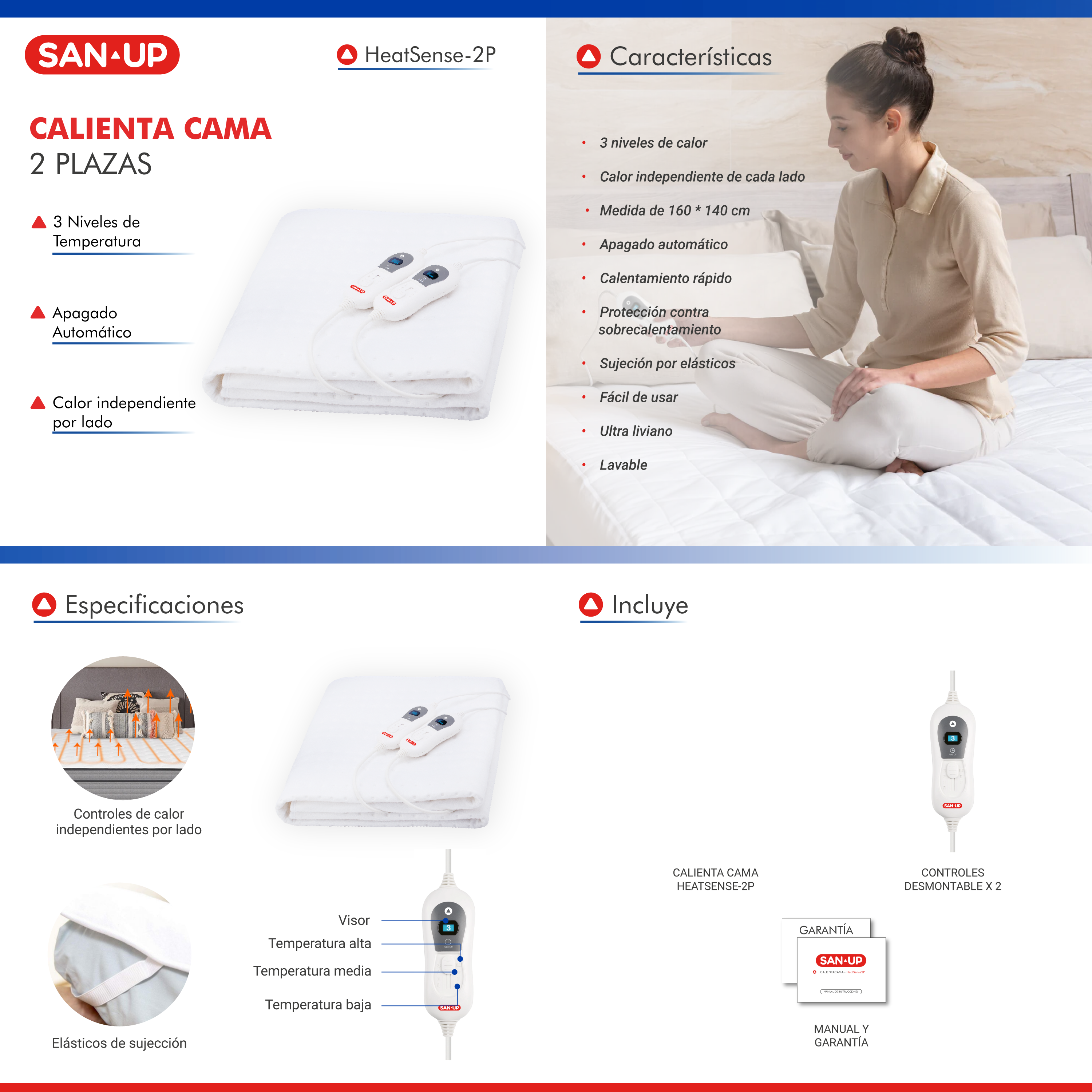 Cubrecamas Térmico Eléctrico 2 plazas HeatSense-2p SAN▴UP