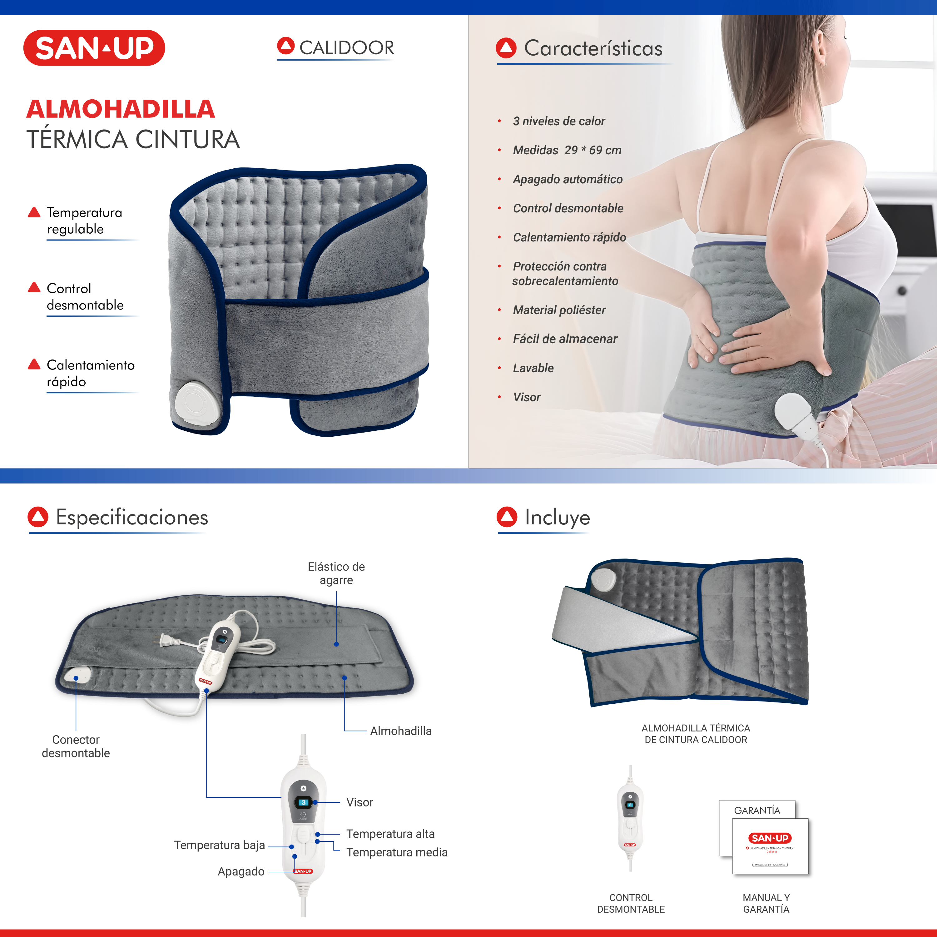 Almohadilla Térmica de Cintura Eléctrica Calidoor SAN▴UP