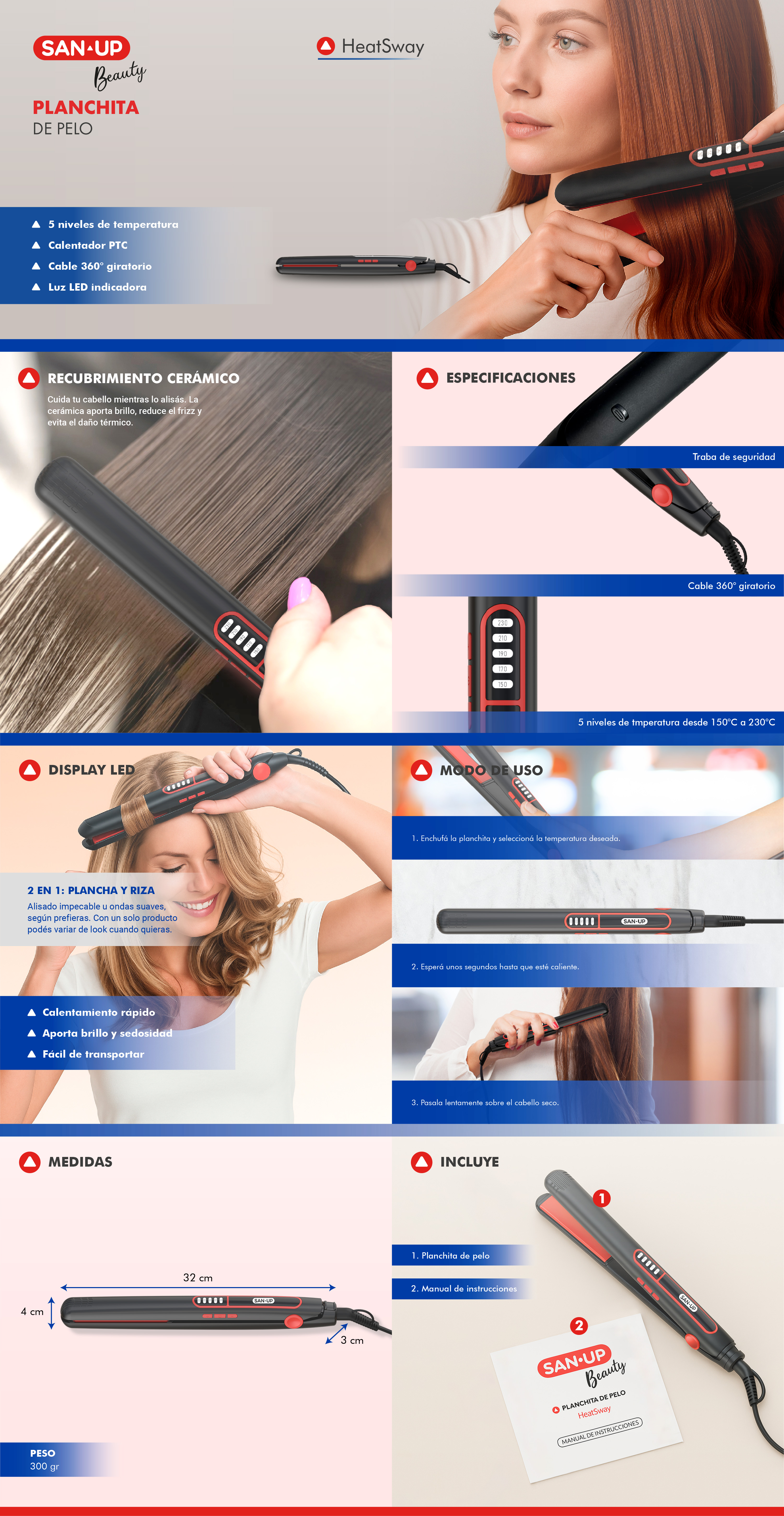 Es la herramienta definitiva para lograr un alisado impecable o unas ondas suaves con un solo producto. Incorpora un versátil Display LED que te permite seleccionar entre 5 niveles de temperatura, que van desde los 150°C hasta los 230°C, dándote control total para adaptarse a cualquier tipo de cabello.