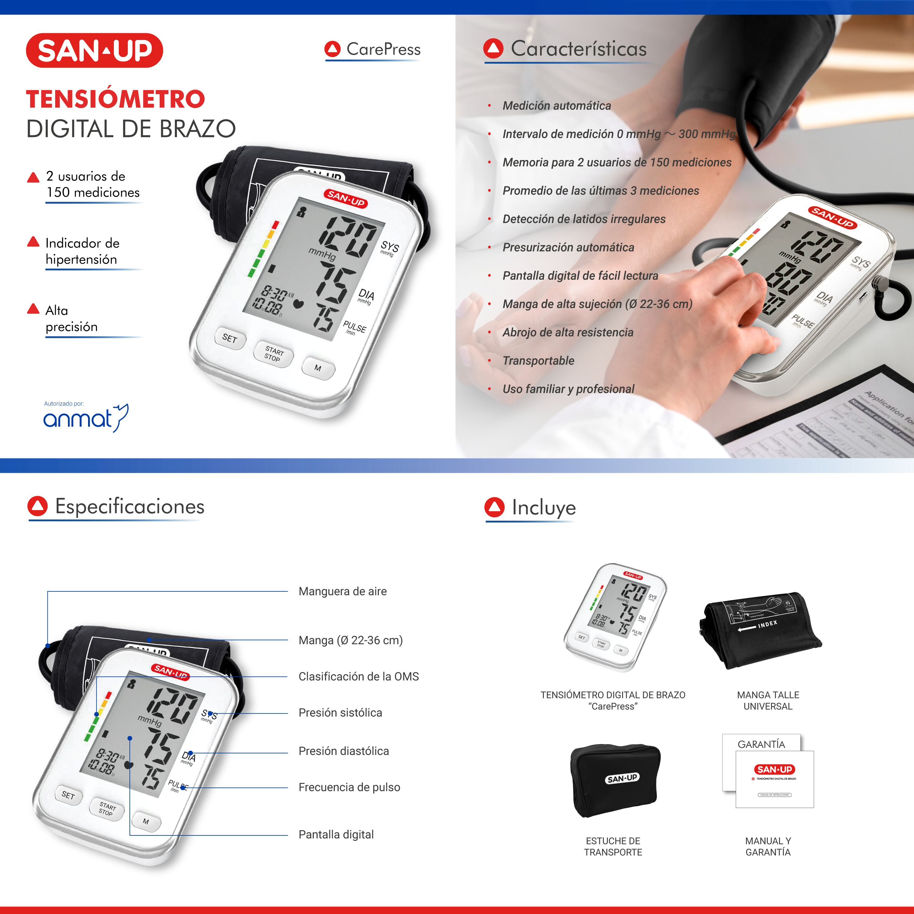 Tensiómetro Digital de Brazo CarePress SAN▴UP