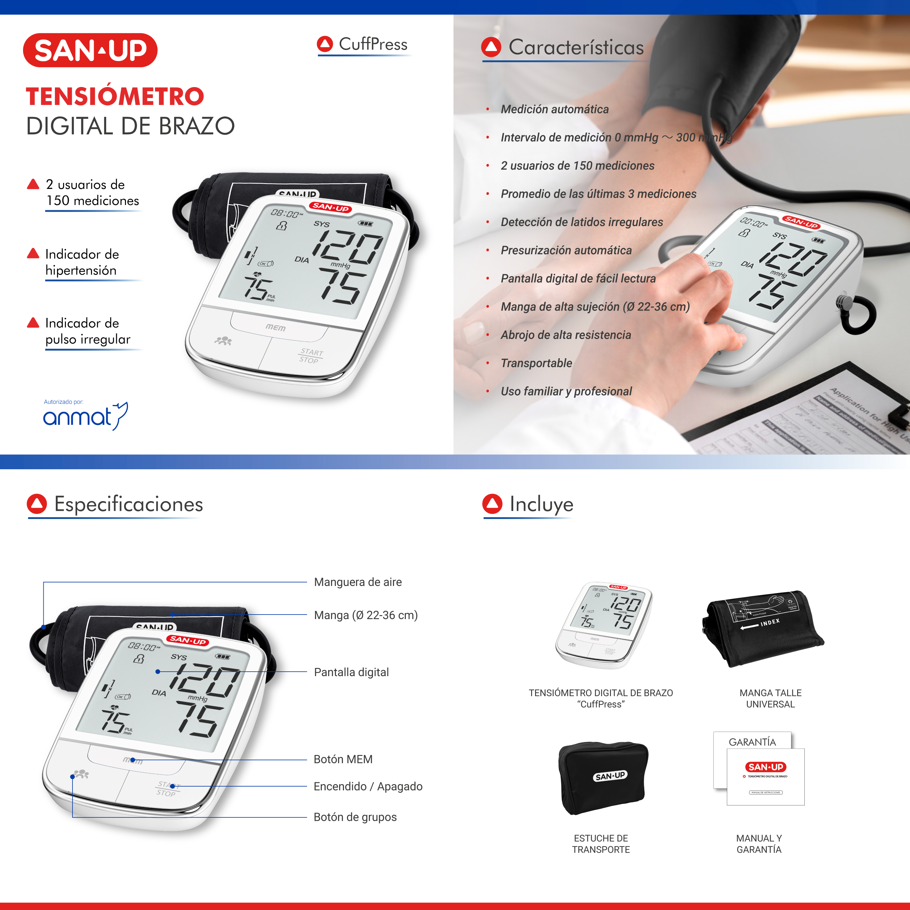 Tensiómetro Digital de Brazo CuffPress SAN▴UP