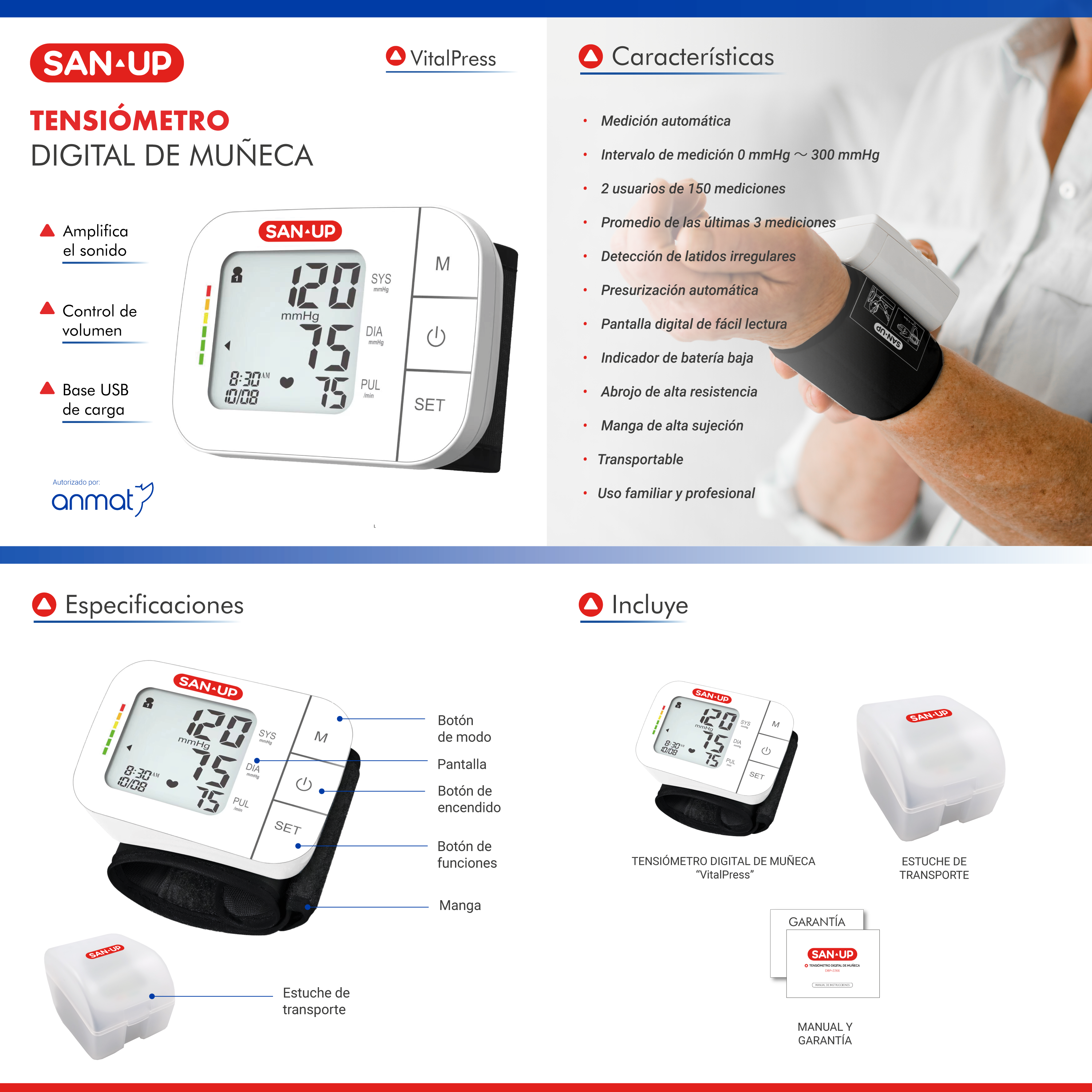 Tensiómetro Digital de Muñeca VitalPress SAN▴UP